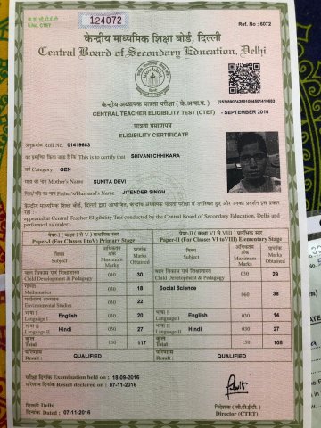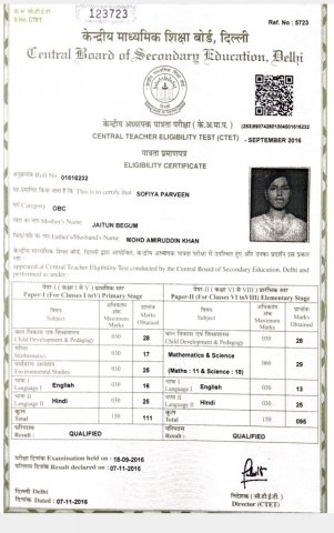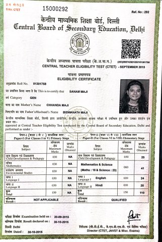 sanam maji ctet qualified proof