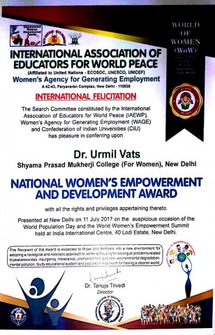 dr urmil vats _award